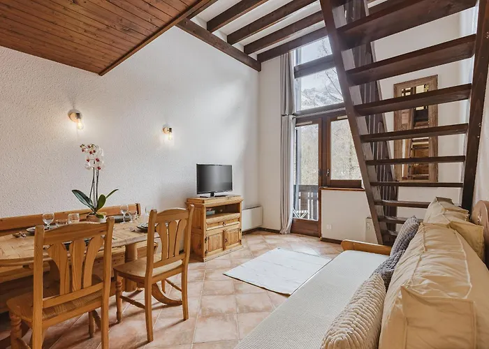 Situado muy cerca de jardín, el Full Nature Apartment - Les Praz - Happy Rentals ofrece vistas a las montañas. El Teleférico de l'Aiguille du Midi está situado a 1 km y la Telecabina de La Mer de Glace se encuentra a una distancia de 3 km del apartamento de 50 m^2.